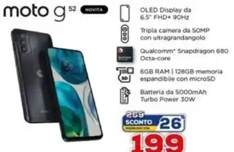 | moto g52 | Euronics | €269,00 | €199,00 | €70,00 Sconto | 26 gennaio 2023 | 08 febbraio 2023 | |
