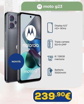| motorola moto g23 | Euronics | €239,99 | €198,00 | €41,99 Sconto | 27 aprile 2023 | 11 maggio 2023 | |