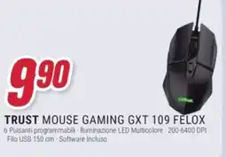 | 6 | Trust mouse gaming gxt 109 felox | Trony | €9,90 | 27 dicembre 2025 | 14 gennaio 2026 | Guarda l'offerta | |||