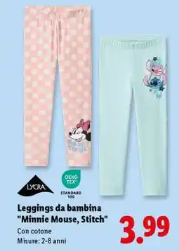 | 1 | Leggings da bambina Minnie Mouse, Stitch | Lidl | €3,99 | 09 febbraio 2026 | 15 febbraio 2026 | Guarda l'offerta | |||