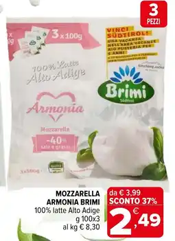 | Mozzarella armonia BRIMI 3 x 100 g | Iperal | €3,99 | €2,49 | -37% | 04 settembre 2025 | 16 settembre 2025 | |