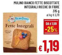 | Mulino bianco fette biscottate integrali ricche di fibre 315 g | A&O | €1,59 | €1,19 | -25% | 25 febbraio 2026 | 10 marzo 2026 | |