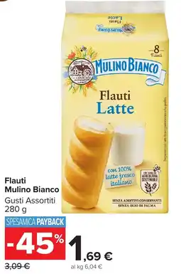 | Flauti Mulino Bianco 280 g | Carrefour Market | €3,09 | €1,69 | -45% | 06 febbraio 2026 | 15 febbraio 2026 | |