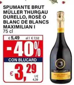 | Spumante brut müller thurgau durello, rosè o blanc de blancs MAXIMILIAN I 75 cl | Il Gigante | €5,49 | €3,29 | -40% | 15 dicembre 2025 | 31 dicembre 2025 | |