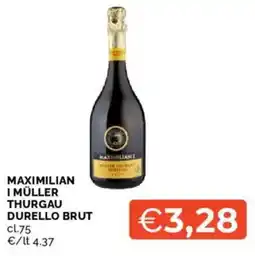 | SPUMANTE MÜLLER THURGAU DURELLO BRUT MAXIMILIAN I cl.75 | Mercatò | €3,48 | 27 maggio 2024 | 09 giugno 2024 | |||