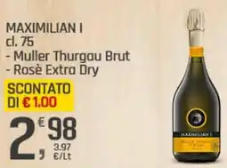 | MAXIMILIAN - Muller Thurgau Brut - Rosè Extra Dry 75 cl | Supermercati Dok | €2,98 | 03 luglio 2025 | 16 luglio 2025 | |||