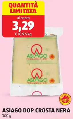 | 2 | Asiago dop crosta nera 300 g | ALDI | €3,29 | 16 marzo 2026 | 22 marzo 2026 | Guarda l'offerta | |||