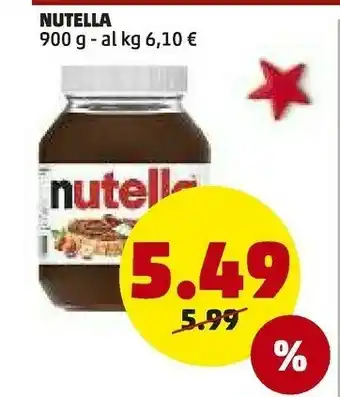 | NUTELLA 950 g | PENNY | €7,49 | €5,49 | €2,00 Sconto | 24 settembre 2024 | 06 ottobre 2024 | |