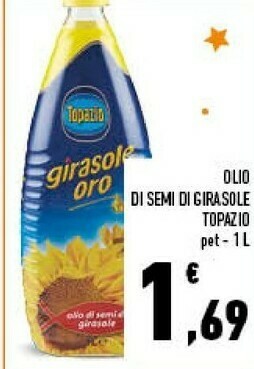 | Olio di semi di girasole topazio 1 L | Conad | €2,98 | €1,39 | -53.36% | 31 ottobre 2024 | 09 novembre 2024 | |