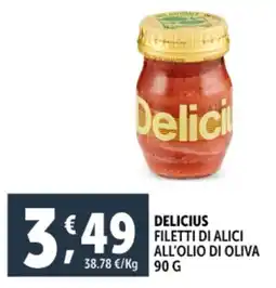 | Delicius filetti di alici all'olio di oliva 90 g | Deco Supermercati | €3,49 | 27 maggio 2025 | 05 giugno 2025 | |||