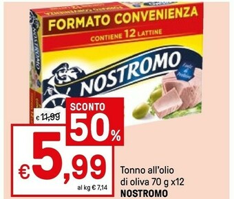| Tonno all'olio di oliva NOSTROMO 12 x 60 g | Iper La Grande | €16,89 | €7,99 | -52% | 21 marzo 2025 | 06 aprile 2025 | |