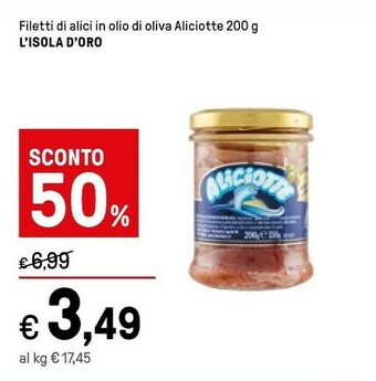 | Filetti di alici distese in olio di oliva L'ISOLA D'ORO 150 g | Iper La Grande | €7,49 | €4,49 | -40% | 23 settembre 2024 | 02 ottobre 2024 |