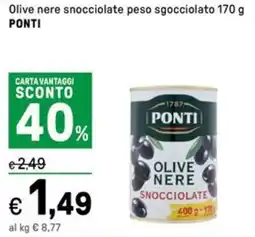 | Olive nere snocciolate peso sgocciolato PONTI 170 g | Iper La Grande | €2,49 | €1,49 | €1,00 Sconto | 05 marzo 2026 | 18 marzo 2026 | |
