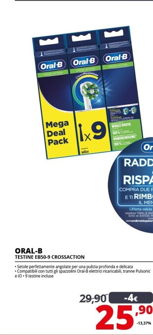 ![]() | Oral b testine eb50-9 crossaction | Comet | €29,90 | €25,90 | €4,00 Sconto | 25 maggio 2023 | 07 giugno 2023 |
