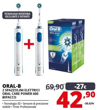 ![]() | Oral b 2 spazzolini elettrici oral care power 600 bipacco | Comet | €69,90 | €42,90 | €27,00 Sconto | 22 giugno 2023 | 30 giugno 2023 |