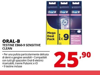 ![]() | Oral b testine eb60-9 sensitive clean | Comet | €25,90 | 31 agosto 2023 | 13 settembre 2023 | ||