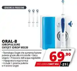 ![]() | ORAL-B IDROPULSORE OXYJET IDROP MD20 | Comet | €69,90 | -21% | 05 giugno 2025 | 18 giugno 2025 | |