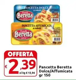 | BERETTA Pancetta dolce/aff. 150 g | Iper Tosano | €3,65 | 23 dicembre 2025 | 29 dicembre 2025 | |||