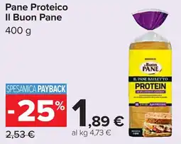 | 1 | Pane Proteico Il Buon Pane 400 g | Carrefour | €2,52 | €1,89 | -25% | 21 aprile 2026 | 04 maggio 2026 | Guarda l'offerta | |