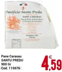 | Pane Carasau SANTU PREDU 900 g | Centro Cash | €4,59 | 06 aprile 2026 | 19 aprile 2026 | |||