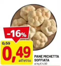 DPiù Pane michetta soffiata offertaPane michetta soffiataDPiù€4,90€3,65-25%19 agosto 202401 settembre 2024