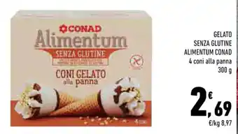 | GELATO SENZA GLUTINE ALIMENTUM CONAD 4 coni alla panna 300g | Conad | €2,69 | 20 giugno 2023 | 02 luglio 2023 | |||