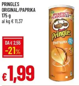 | 1 | Pringles original/paprika 175 g | IperFamila | €2,55 | €1,99 | -21% | 22 gennaio 2026 | 01 febbraio 2026 | Guarda l'offerta | |