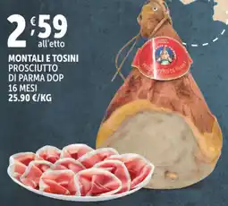 | MONTALI & TOSINI prosciutto di parma dop stagionato 24 mesi | Deco Supermercati | €2,29 | 23 maggio 2023 | 02 giugno 2023 | |||
