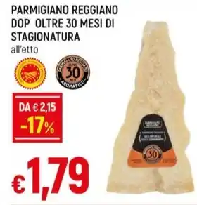 | Parmigiano reggiano dop oltre 30 mesi di stagionatura all'etto | Famila | €2,29 | €1,59 | -30% | 12 dicembre 2024 | 31 dicembre 2024 | |