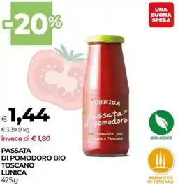 | Passata di pomodoro bio toscano LUNICA 425 g | Unicoop | €1,80 | €1,44 | -20% | 25 febbraio 2026 | 11 marzo 2026 | |
