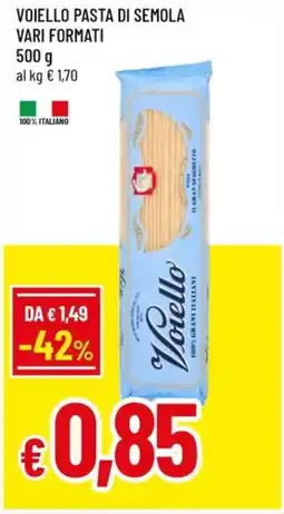 | VOIELLO Pasta di Semola g 500 | A&O | €1,85 | €0,92 | €0,93 Sconto | 24 aprile 2024 | 08 maggio 2024 | |