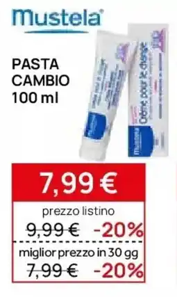 | Mustela pasta cambio 100 ml | Prenatal | €9,99 | €7,99 | -20% | 08 gennaio 2026 | 02 febbraio 2026 | |
