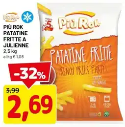 | PIÙ ROK Patatine fritte a julienne 2,5 kg | DPiù | €3,99 | €3,49 | -12% | 27 gennaio 2025 | 09 febbraio 2025 | |