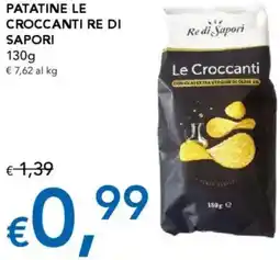 | Patatine le croccanti RE DI SAPORI 130 g | Migross Supermercati e Market | €1,39 | €0,99 | €0,40 Sconto | 09 aprile 2026 | 22 aprile 2026 | |