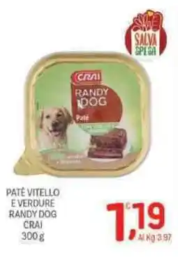 | Pate vitello e verdure randy dog CRAI 300 g | Crai | €1,19 | 02 gennaio 2026 | 07 gennaio 2026 | |||