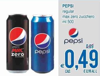 | PEPSI regular/max ml 500 | MD Discount | €0,79 | €0,55 | €0,24 Sconto | 24 gennaio 2024 | 04 febbraio 2024 | |