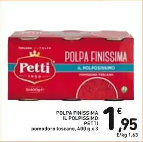 | POLPA FINISSIMA IL POLPISSIMO PETTI pomodoro toscano, 400 g x 3 | Spazio Conad | €1,95 | 21 maggio 2024 | 03 giugno 2024 | |||
