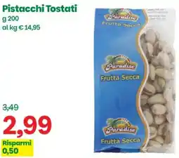 | 1 | Pistacchi Tostati 200 g | Prix Quality | €3,49 | €2,99 | €0,50 Sconto | 21 aprile 2026 | 04 maggio 2026 | Guarda l'offerta | |