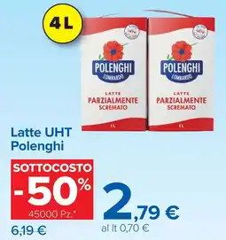 | Latte UHT Polenghi 4 l | Carrefour | €6,19 | €2,79 | -50% | 06 febbraio 2026 | 15 febbraio 2026 | |