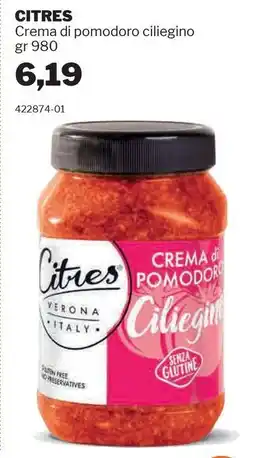 | CITRES Crema di pomodoro ciliegino 980 g | GrosMarket | €6,19 | 28 gennaio 2026 | 10 febbraio 2026 | |||