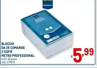 | BLOCCHI DA 25 COMANDE 3 COPIE METRO PROFESSIONAL conf. 10 pezzi cod. 177073 | Metro | €10,99 | €7,49 | €3,50 Sconto | 16 maggio 2024 | 29 maggio 2024 | |