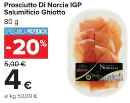 ![]() | Prosciutto Di Norcia IGP Salumificio Ghiotto 80 g | Carrefour Market | €5,00 | €4,00 | -20% | 20 ottobre 2025 | 03 novembre 2025 |