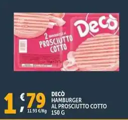 | Decò 2 hamburger al prosciutto cotto 150 g | Deco Supermercati | €1,79 | 08 luglio 2025 | 17 luglio 2025 | |||