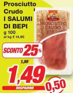 | Prosciutto I Crudo I SALUMI DI BEPI 100 g | Prix Quality | €1,89 | €1,69 | €0,20 Sconto | 23 aprile 2025 | 05 maggio 2025 | |