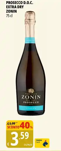 | Zonin prosecco doc extra dry | Tigros | €5,71 | €3,39 | €2,32 Sconto | 06 settembre 2023 | 19 settembre 2023 | |