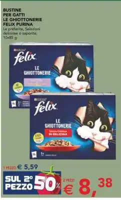 | Bustine per gatti le ghiottonerie FELIX PURINA 10 x 85 g | Esselunga | €5,56 | €3,89 | -30% | 14 agosto 2025 | 27 agosto 2025 | |