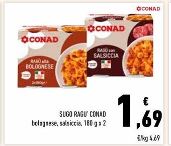 | RAGÙ CONAD salsiccial alla bolognese 2x180g | Conad | €1,99 | 25 ottobre 2023 | 05 novembre 2023 | |||