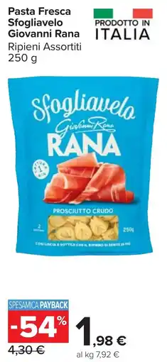 | Pasta Fresca Sfogliavelo Giovanni Rana 250 g | Carrefour Market | €4,30 | €1,98 | -54% | 15 gennaio 2026 | 26 gennaio 2026 | |