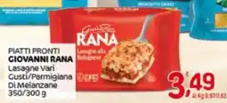 | Piatti pronti GIOVANNI RANA Lasagne Vari Gusti/Parmigiana di Melanzane 350 - 300 g | Crai | €3,99 | 07 agosto 2025 | 19 agosto 2025 | |||