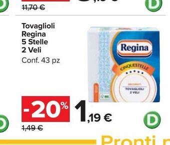 | Regina Regina Tovaglioli 5 Stelle 2 Veli | Carrefour Market | €1,39 | €0,97 | €0,42 Sconto | 16 luglio 2021 | 28 luglio 2021 | |